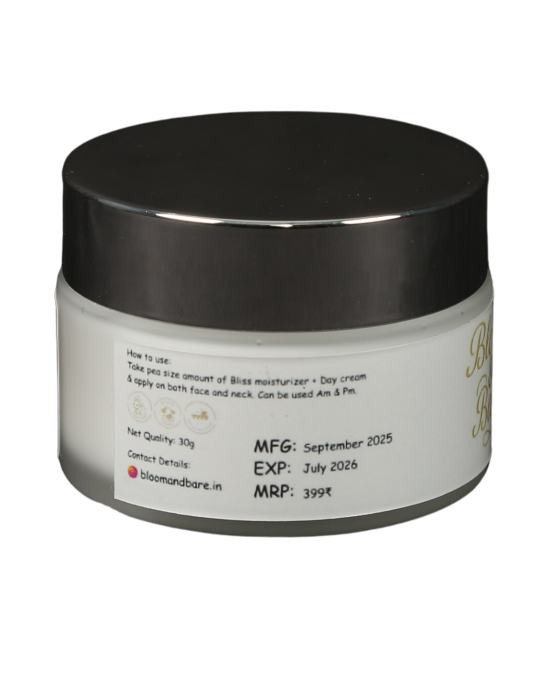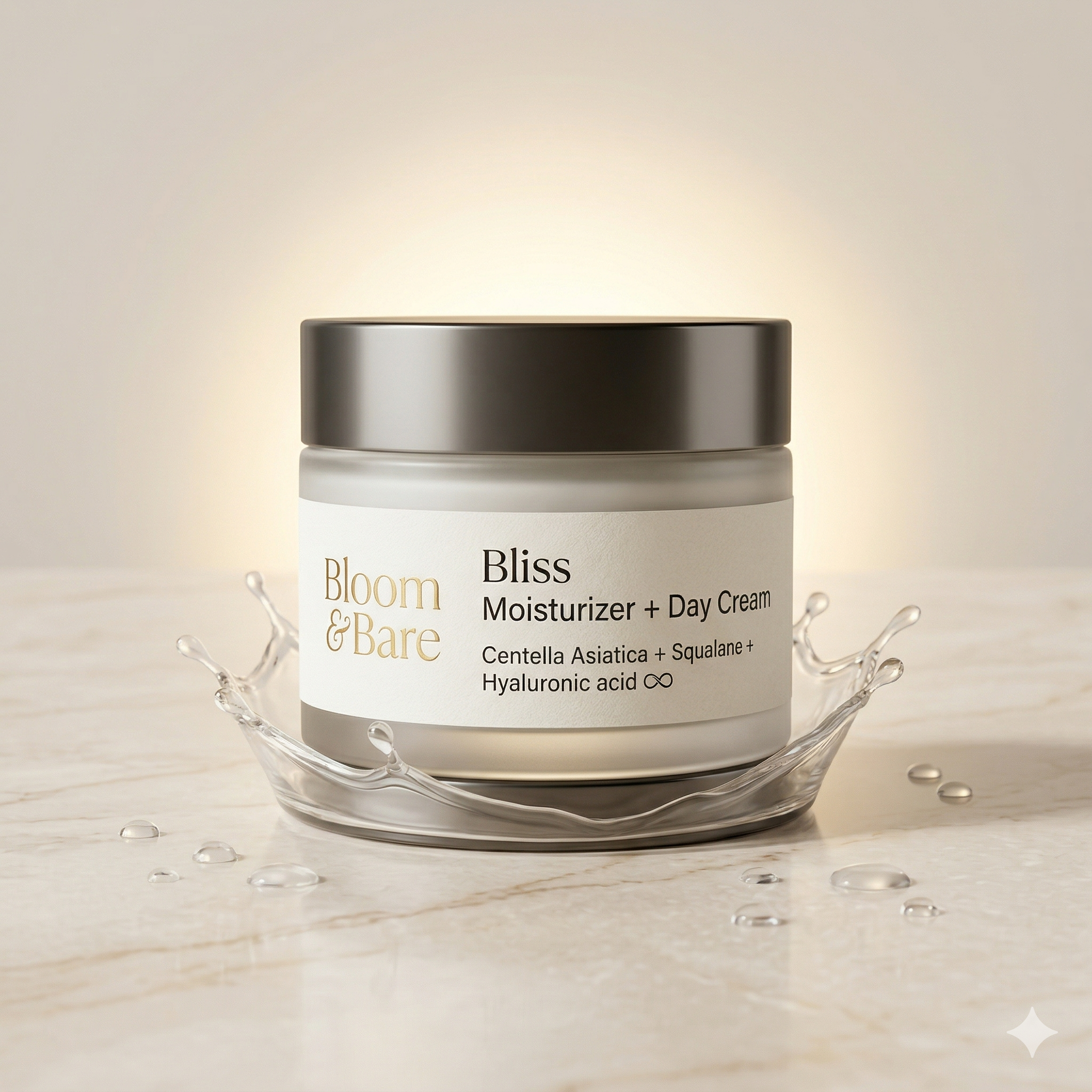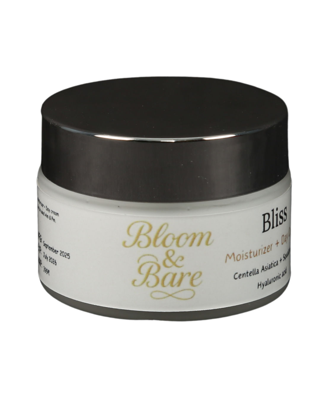 Bliss Moisturizer is a carefully crafted day cream designed to deliver deep hydration while maintaining a lightweight, non-greasy finish. Infused with the calming power of Centella Asiatica, the barrier-repair benefits of Squalane, and the intense hydration of Hyaluronic Acid, this formula works to nourish your skin from within.